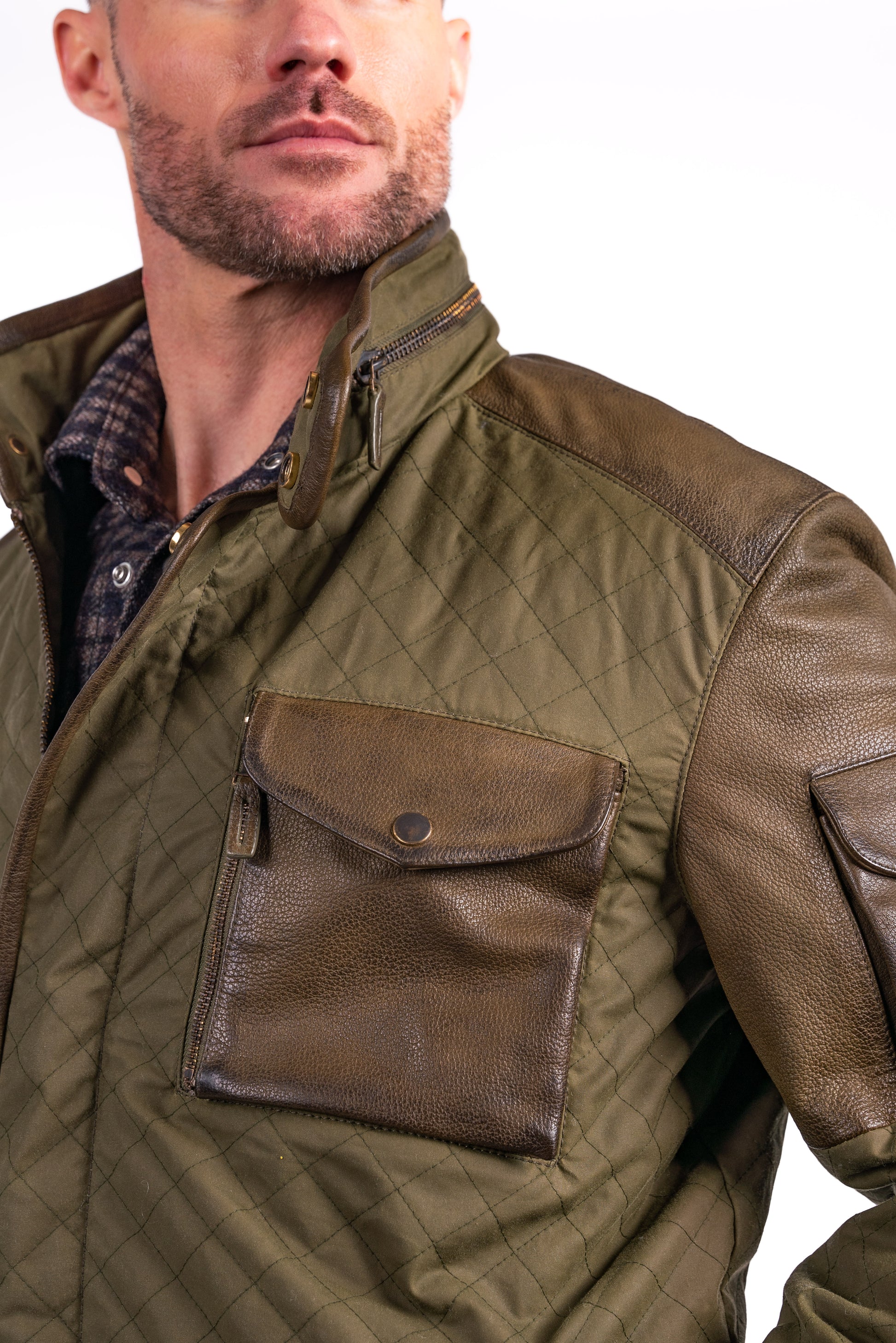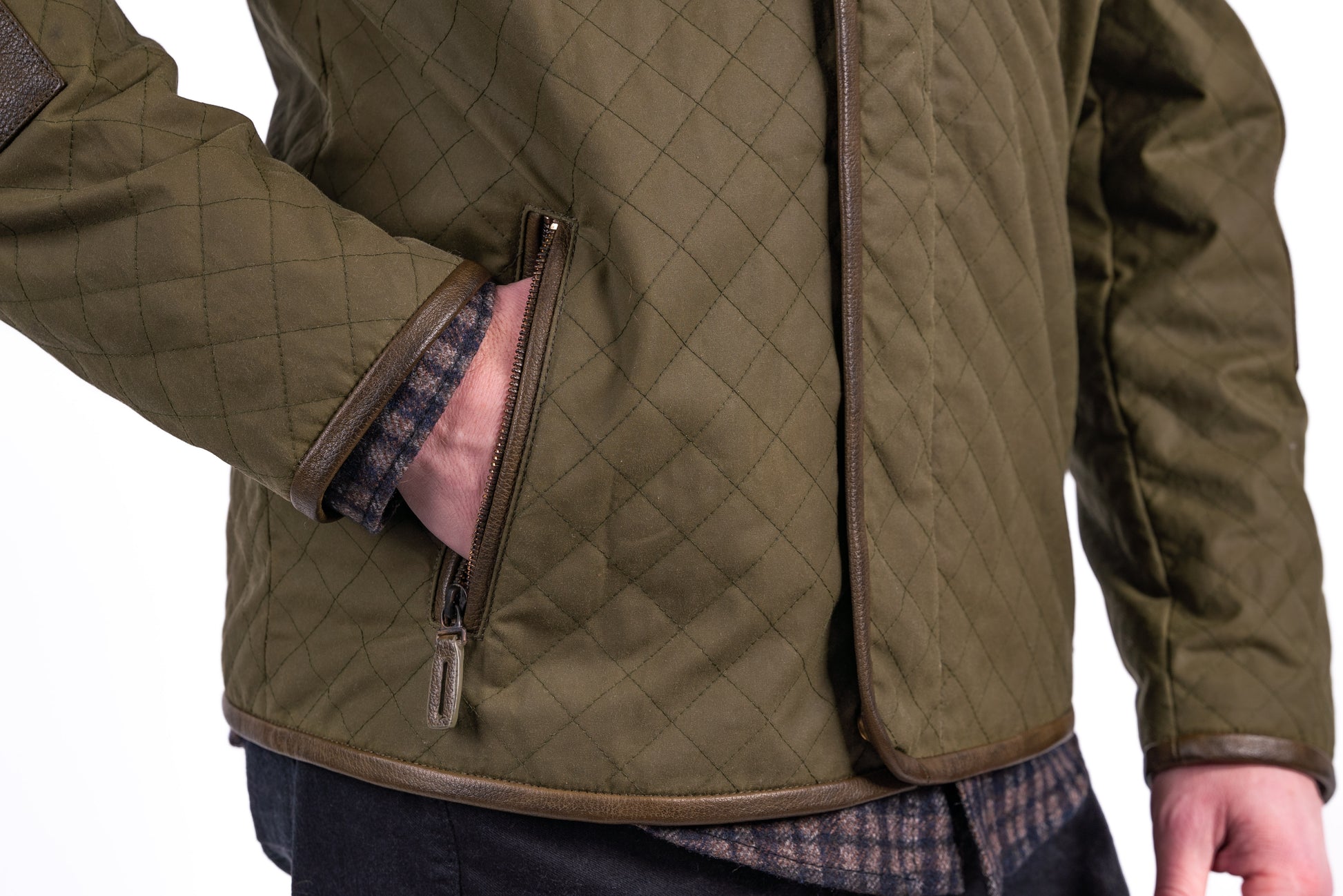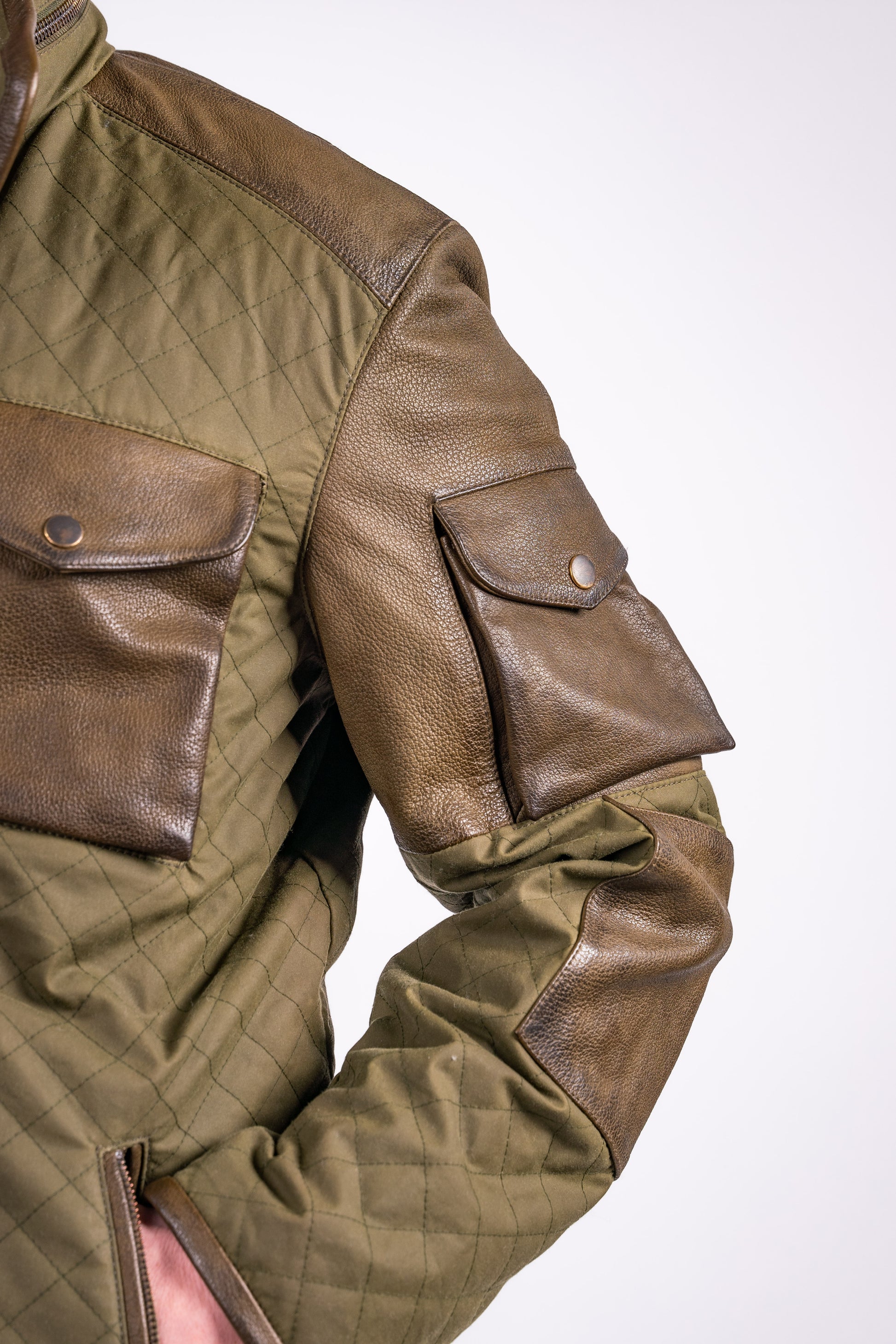 Quilted waxed cotton with pebble embossed burnished lamb pockets