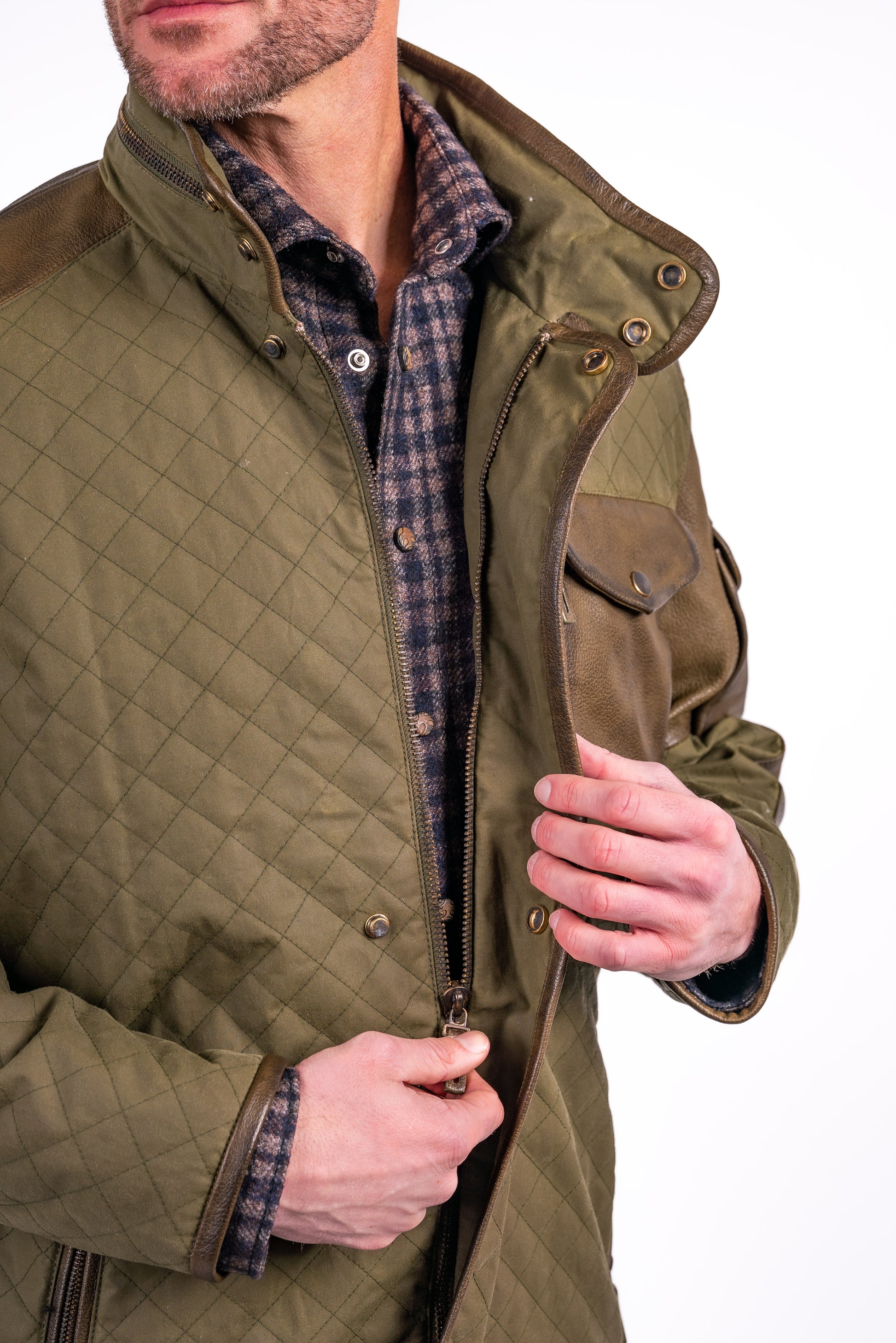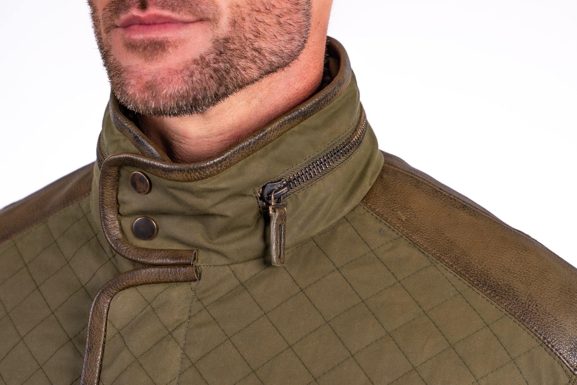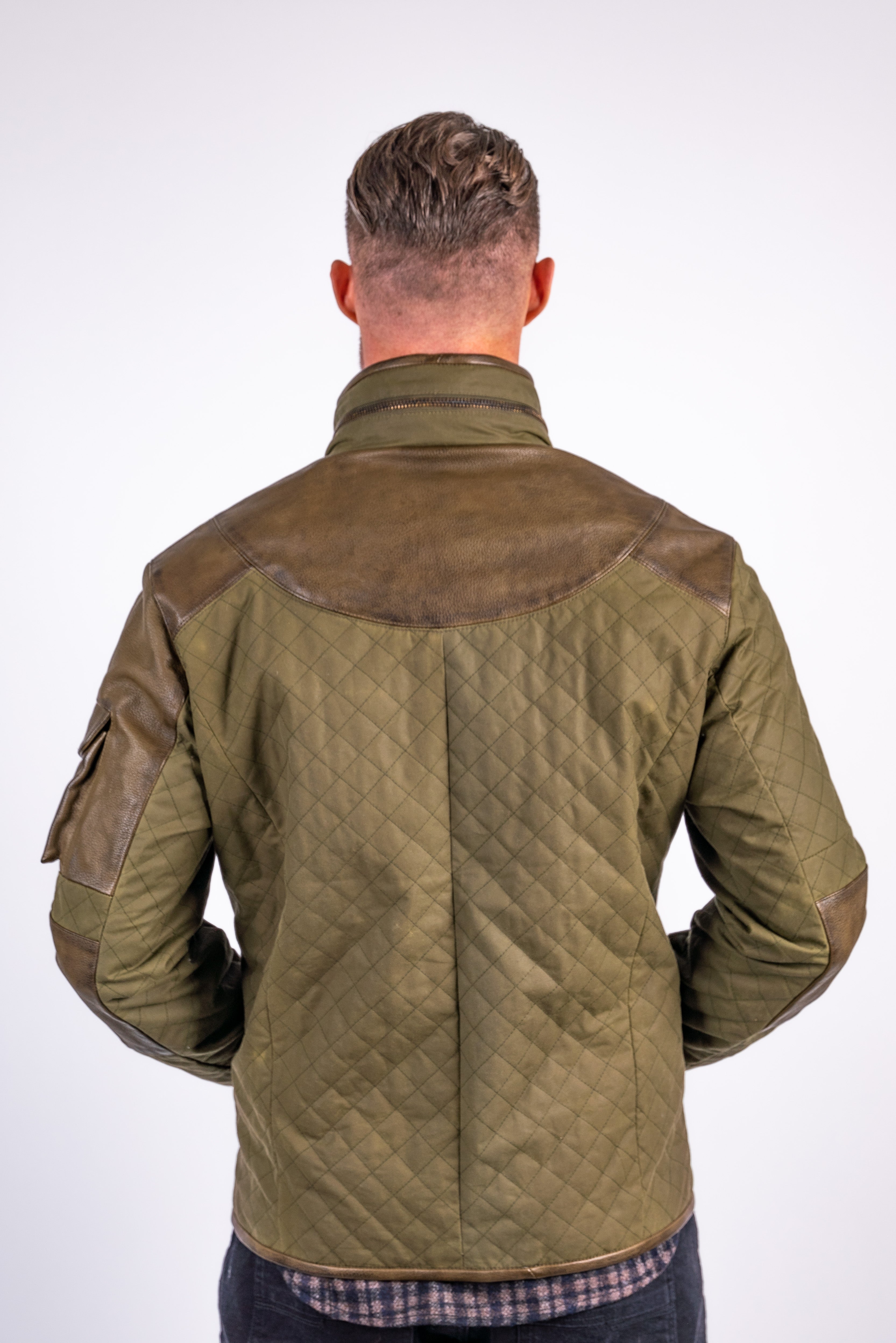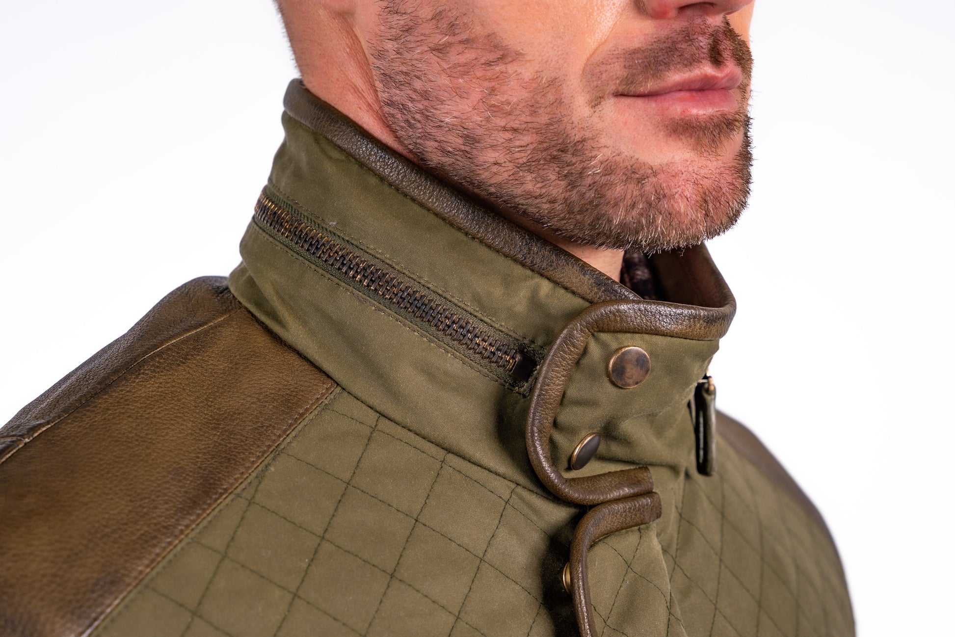 Quilted waxed cotton with pebble embossed burnished lamb pockets